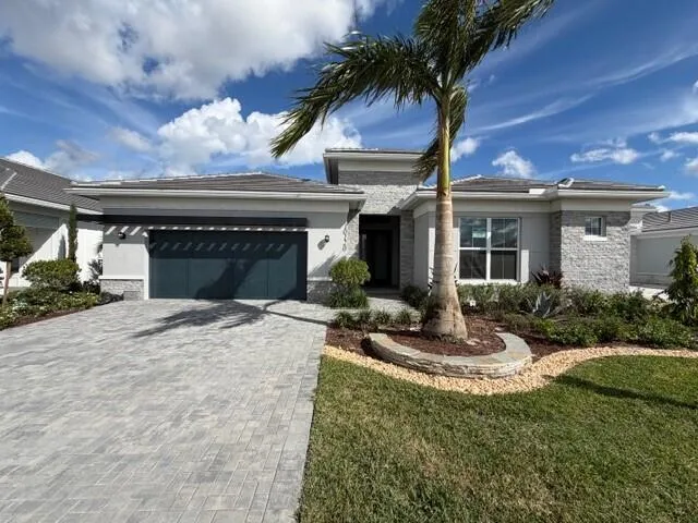 Welcome Home! Step into this stunning residence featuring a grand foyer with soaring 12-foot ceilings and a bright, open-concept design. Gorgeous LVP flooring flows seamlessly throughout, leading you into the expansive living area. Just off the entry, a sunlit study with glass French doors offers space for a home office or library. The chef-inspired kitchen impresses with stylish two-toned cabinetry, a walk-in pantry, and a designer quartz backsplash. The luxurious primary suite showcases white shaker cabinetry, a spa-like bath with a drop-in soaking tub, a walk-in shower with bench, and a spacious closet. A conveniently located powder bath adds comfort for guests, while secondary bedrooms provide ample space for family or visitors. Step outside to the expanded covered lanai, perfect for