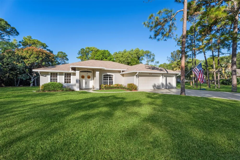 Rare and impeccably maintained CBS residence set on over an acre in the highly desirable Trailwood community, offering privacy, space, and quality construction. This 3,205 sq ft residence features 4/3+den, with an open concept layout, soaring ceilings, and abundant natural light. Wood-look tile flooring runs throughout the main living areas. The kitchen and bathrooms are finished with granite countertops and classic detailing, while the spacious primary suite includes an updated, spa-inspired bathroom. A guest bedroom with en-suite bath provides privacy for visitors. Outdoor living with a screened saltwater pool and expansive patio. Major systems updated, includes new roof in 2025, offering peace of mind. Low HOA. Located near major highways, shopping, dining, and Jupiter's beaches.