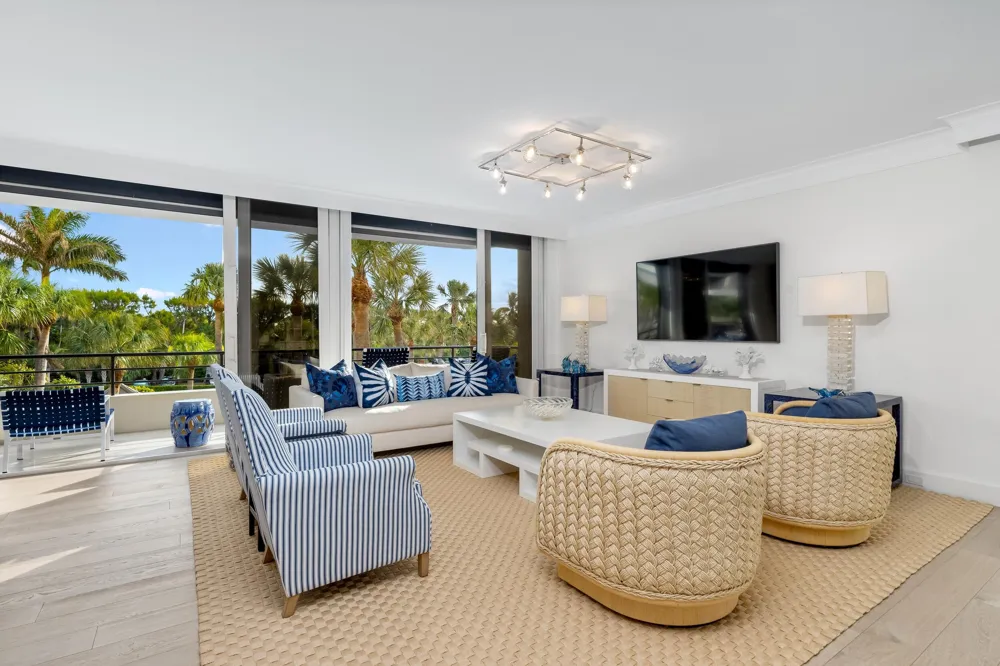 Stunning light-filled condominium in the Leverett House. Gorgeous custom renovation with 3 bedrooms, 3 full bathrooms, and 1 powder room. Rarely available apartment features a gracious floorplan and top-of-the-line finishes throughout. Fabulous great room with bar and floor to ceiling windows leads to expansive covered terrace perfect for indoor and outdoor entertainment. Pristine kitchen features island with waterfall countertops, wine fridge, and endless storage. Spacious Primary suite with multiple balconies, large bath with dual sinks and walk-in closets, and private entry vestibule. This unit offers views of the town, the pool, and the gardens. Additional highlights include stunning hardwood flooring, laundry room, separate service entry, and pool cabana. The Leverett House is a stunning full-service building with a full-time manager, exercise facility, and beach access.