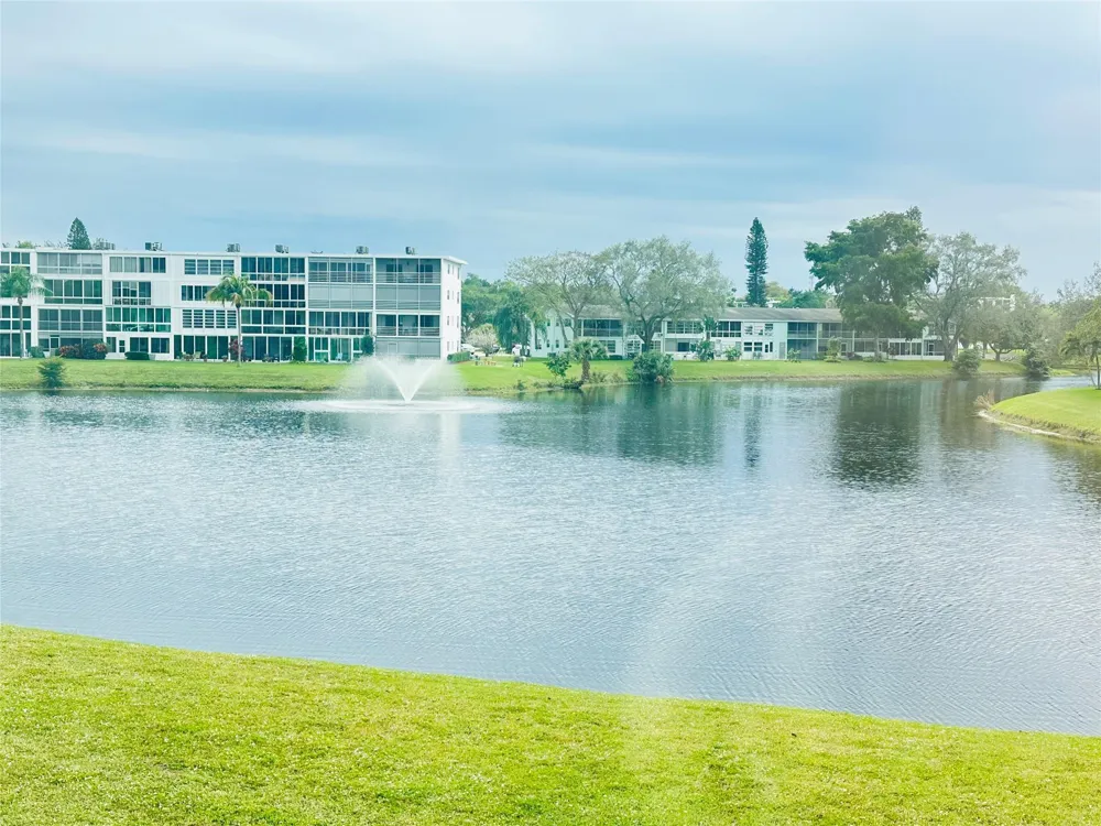 LOVELY 1 bedroom, 1.5 bath condo on the 2nd flr featuring a SERENE LAKE VIEW! The updated kit offers white appl & over-cab ltg, creating a bright & inviting space. Carpet in liv rm & bedrm, tile in main liv areas for easy maintenance. Crown molding enhances the liv area, adding a touch of elegance. Enjoy peace of mind w/ a hurricane-impact front door. Unit comes FULLY FURNISHED! The encl patio features sliding windows & a portable A/Cperfect for relaxing yr-round while taking in the BEAUTIFUL WATER VIEW. Just STEPS TO THE POOL! This vibrant 55+ gated comm offers resort styled liv, 24 hr sec, free busses, pools, pickleball, tennis, pickleball, Clubhouse w/gym, classes, billiards, clubs & more! Only 10 min from the beach & close to shopping & dining! Your paradise awaits! ASSOC. CLAIMS 55+