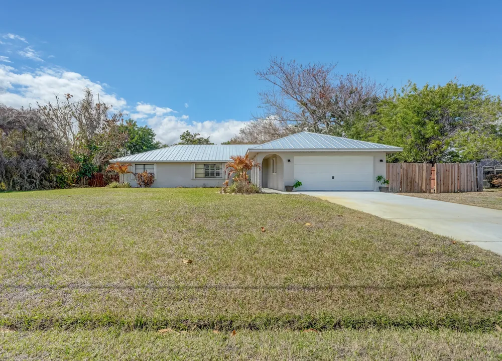 Welcome to this spacious and thoughtfully updated 3-bedroom, 2-bath residence, positioned on nearly half an acre. This home offers a rare combination of interior comfort and outdoor space, giving you room to relax, entertain, and truly enjoy Florida living. Inside, you'll find a functional split-bedroom layout that provides privacy for the primary suite while keeping the secondary bedrooms conveniently located on the opposite side of the home. The living areas feel bright and inviting, with an open flow that makes everyday living and hosting guests effortless. Brand-new vinyl flooring extends throughout the home, creating a cohesive and modern look. The kitchen has been tastefully upgraded with quartz countertops and ample counter space for meal prep and gathering. The primary suite offers a comfortable retreat, complete with a beautifully refreshed en-suite bathroom. Major updates have already been completed for peace of mind, including a 2022 roof replacement and a new water heater. Conveniently located near shopping centers, restaurants, parks, and the stunning beaches of the Treasure Coast, this home blends suburban tranquility with easy access to everyday amenities. With its generous lot size, modern improvements, and practical layout, this property is ready for its next owner to move in and make it their own.