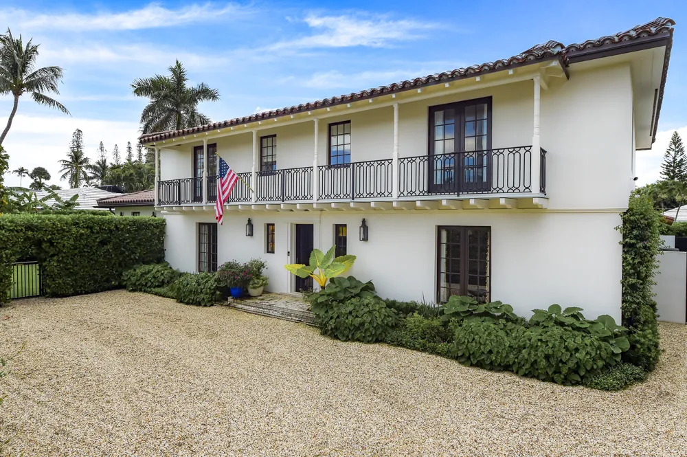 NEW PHOTOS COMING SOON! Located in Palm Beach's desirable North End, this Monterey-style residence is set on an oversized 121' x 105' lot and offers 5,781± total square feet with four bedrooms and four and a half bathrooms. The property features exceptional outdoor space, including a generous front yard, a south-facing pool with terrace, loggia, summer kitchen, and a service entry with a two-car garage accessed from Via Marila. The foyer, finished with Versailles wood flooring, includes a powder room and introduces the main living areas, with a staircase leading to the second floor. The living room features a gas-burning fireplace, while the formal dining room is filled with natural light and connects directly to the kitchen. The eat-in kitchen is well appointed with a large island, extensive storage, two Sub-Zero refrigerators and freezers, refrigerator drawers, a wine refrigerator, a Wolf gas range and oven, and dual dishwashers. Adjacent to the kitchen is a laundry room with dual washers and dryers, ample storage, and access to both the side yard and garage. The spacious family room faces south and opens to the pool and loggia through large windows and doors. A library with custom built-in shelving and cabinetry also provides access to the pool terrace. The first-floor primary suite offers multiple closets and opens to a private terrace, with a bath featuring a steam shower, separate soaking tub, dual sinks, vanity, water closet, and direct access to the pool area. Upstairs, a terrace overlooks the pool, and three guest bedrooms each feature en suite baths and closets. One guest suite includes dual walk-in closets, dual sinks, a separate tub and shower, and a water closet with bidet. Ideally located near the beach and the Lake Trail.