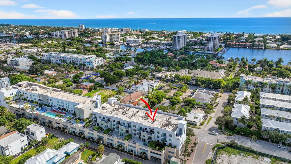 Live a resort style lifestyle in the heart of downtown Delray Beach in this penthouse level 1 bedroom residence at 236 Fifth. This newer boutique building offers the rare blend of private condo living with shared Aloft Hotel amenities, creating a true year round vacation feel. Enjoy ocean glimpses from the oversized private balcony and designer finishes throughout. The open concept kitchen features a quartz waterfall island, two tone cabinetry, mosaic backsplash, KitchenAid appliances, and a wine refrigerator. Residents enjoy access to the Aloft resort pool, fitness center, restaurant, and bar, plus concierge service and a private residents only club room with wine lockers. Covered garage parking and private storage included. Two blocks to Atlantic Avenue and 1.1 miles to the beach.