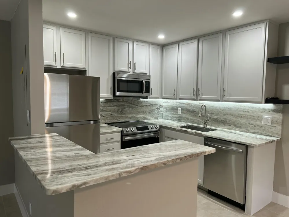 Nicely renovated, beautiful kitchen. Quiet location on dead-end street. Easy access to Linton Blvd between two gates, one manned and the other unmanned. Lots of green space for walking.