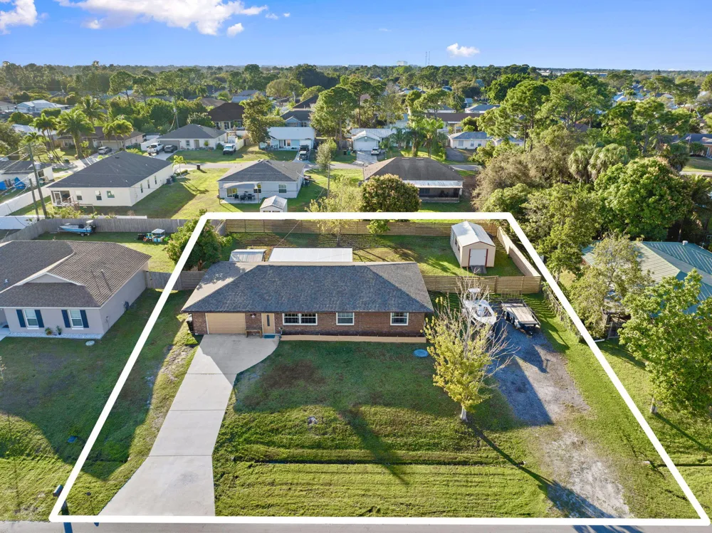 This Home offers a comfortable and functional layout with generous indoor and outdoor space, designed for everyday living and long-term use. Inside, the home features a practical floor plan that flows naturally from room to room, providing flexibility for both daily routines and entertaining. The kitchen has been updated in recent years with granite countertops and durable finishes, offering a clean, functional workspace that connects easily to the main living areas. Tile and laminate wood flooring throughout the home add durability and ease of maintenance. A full laundry room with a mud-room-style bathroom located just off the garage creates a highly functional transition space — ideal for busy households, projects, or coming in from the yard without tracking through the home. The backyard is where this property truly opens up. Fully fenced for privacy, the outdoor space includes a dedicated gazebo grilling area well-suited for gatherings or quiet evenings. Mature fruit trees add character and shade, creating a yard that feels established and usable rather than overbuilt. Side-yard access with a culvert and double gate provides valuable flexibility for storage, recreational equipment, or future needs. A 12x24 shed with power further enhances the versatility of the property. Additional improvements include a newer roof and a yard layout that supports a variety of lifestyles, hobbies, and uses. This home offers a strong balance of comfort, function, and outdoor space, with features that support real living rather than short-term trends. Conveniently located in Port St. Lucie with easy access to shopping, dining, and major roadways.