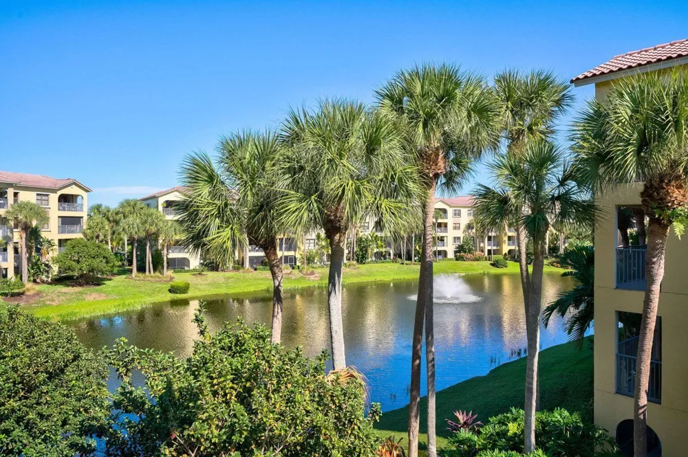 Available May - Sept 2026 *Not available for season 2027* Experience luxury living in this stunning 3rd floor 3 Bed/2 Bath lakefront condo! Tile floors flow throughout the main living areas, with laminate in all bedrooms. The remodeled master bath is a true showstopper with quartz countertops, custom cabinetry, and a sleek shower. The primary bedroom features a king bed, the 2nd bedroom offers a queen, and the 3rd has a twin. Sip your morning coffee while taking in breathtaking lagoon views from your private balcony! The gated community boasts 2 heated pools, Jacuzzi tubs, a fitness center, and BBQ area. Just minutes from pristine beaches, boating, golf, downtown Gardens, and amazing restaurants. Embrace the best of Florida living in your own tropical paradise!