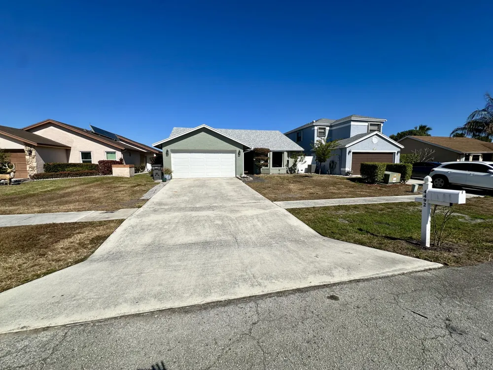 3/2 Single Family House with fully fenced yard, 2-car garage and large driveway. Open concept home with tall ceilings in the main living area. Great location in West Palm Beach with nearby shopping, restaurants, and entertainment. Kitchen has taupe cabinets, quartzite counters, slate stainless steel appliances, tile backsplash, brass hardware, undermount lighting, and french double doors to the patio. Peace of mind living in this home with a 2023 roof, brand new high efficiency AC, new LED lights, and all impact windows. Basic cable & wifi included with the rent. Master bedroom has a walk-in closet. Master bathroom has an updated walk-in shower. Full sized washer and dryer are in the garage. Community has a pool, club house with pool table and ping pong table, park, tennis courts, & more.