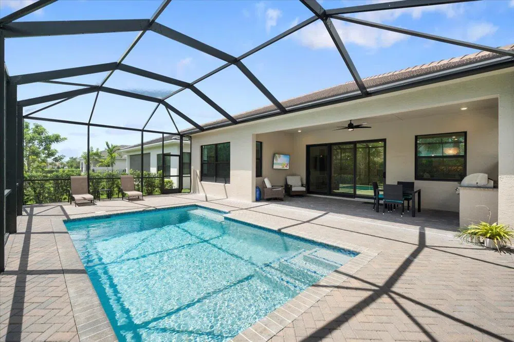 Prestigious 55+ new Cresswind community at Westlake offering a spacious open Fiesta model floor plan 2 yr new CBS, 3 bedrooms, 3 full baths plus an office/Den. Over $100,000 worth of upgrades featuring gleaming quartz counters in Kitchen w/ a massive 11.4 x 3.9 Island with Quartz countertop all w/ beautiful veining, gas cooktop, kitchen fit for a chef! Glass sliders lead to your private covered lanai fully equipped w/ gas summer kitchen & in ground Salt pool w/ extended paver patio surround & patio all screened in. Recessed lighting throughout home, marble look tile floors, all stainless steel GE profile appliances, undermount kitchen lighting, 48'' soft close cabinets & draws in kitchen, impact windows, tray ceilings, 9.10 ft ceiling, epoxy non slip garage floor, 8 ft two paneled doors through out, baseboards throughout, alarm system, security cameras with sensors, sprinkler system, all fan/light fixtures have a remote. So many features offered. This home is nestled within the vibrant 55+ Cresswind community, this home offers more than just a residence, it's a gateway to an active & engaging lifestyle featuring resort-style pool, hot tub, pickleball, tennis, social rooms, crafts room & a state-of the-art fitness center. Owners also have access to Westlake's Adventure Park!