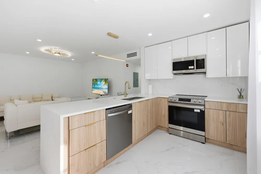 Welcome to 618 Normandy M - a beautifully renovated 2nd-floor condo in the highly sought-after 55+ Kings Point community. This stunning unit features porcelain floors in living areas, engineered laminate in bedrooms, and an open, oversized designer kitchen with extra storage, stainless steel appliances, and recessed lighting. Both bathrooms are fully remodeled with modern showers, and the unit includes new permitted electrical panel, AC (2020), and a new washer & dryer. Enjoy peaceful garden views and resort-style amenities including golf, tennis, pickleball, multiple clubhouses, indoor/outdoor pools, and a courtesy bus to shopping and dining.