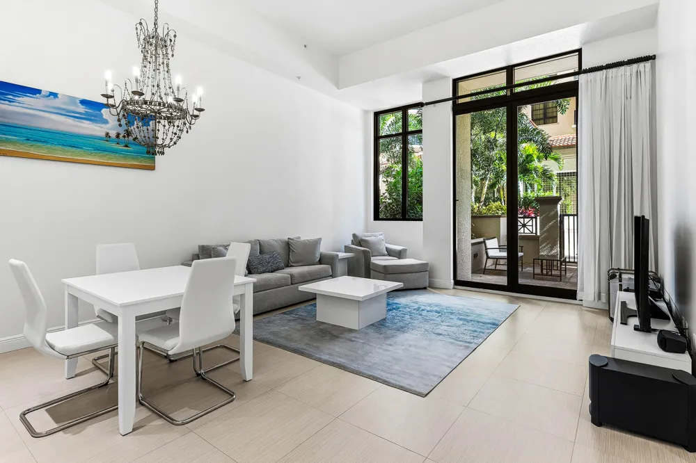 Introducing a truly unique gem in the heart of downtown West Palm Beach in Two-City Plaza. The centerpiece of this residence is its expansive private terrace, seamlessly blending indoor and outdoor living. With a serene ambiance and the perfect spot for relaxation or entertaining, this terrace is a true oasis within the city. Upon entering this rare furnished garden residence, you will be captivated by the soaring 14' ceilings, updated kitchen and flooring throughout this spacious home. The primary bedroom is a sanctuary of comfort and style, complete with an ensuite bathroom, dual closets and its own access to your private gated patio space. 1-car garage parking included. Amenities in this full-service building are endless; 24-hr security, concierge, roof top pool, hot tub, sauna, steam room, fully renovated state of the art fitness center/gym, outdoor kitchen w/ BBQ area and all NEW Restoration Hardware furniture, outdoor & indoor movie theaters, club room, table tennis, lanai courtyard w/ water feature, renovated roof top dog park area, complimentary valet parking & exceptional staff. Centrally located in the heart of Downtown West Palm Beach, across from One Flagler offices, 7 minutes to PBIA airport, award winning restaurants and shopping, and walking to Worth Ave, Palm Beach.