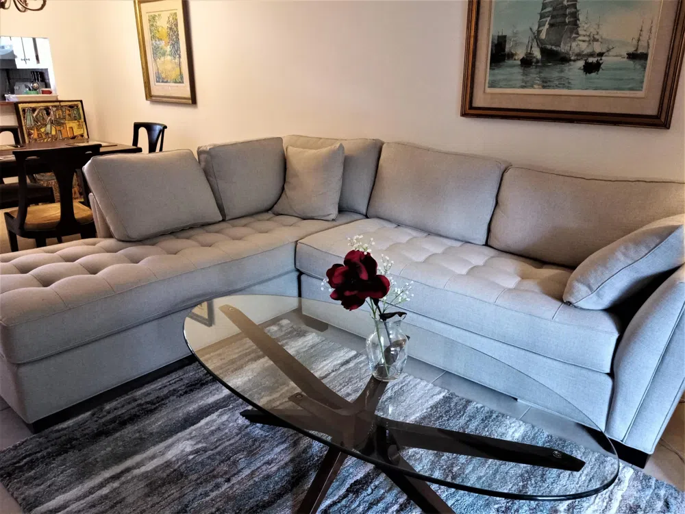 Nice first floor unit with a golf view in a parklike community 55+. Furnished with a new sectional and a new bed. Tile throughout. Low maintenance fee $269 a month. Ready to move in. Association requires a minimum credit score of 700, no assessment, minimum of 25% down. No Pets. Artwork does not convey.