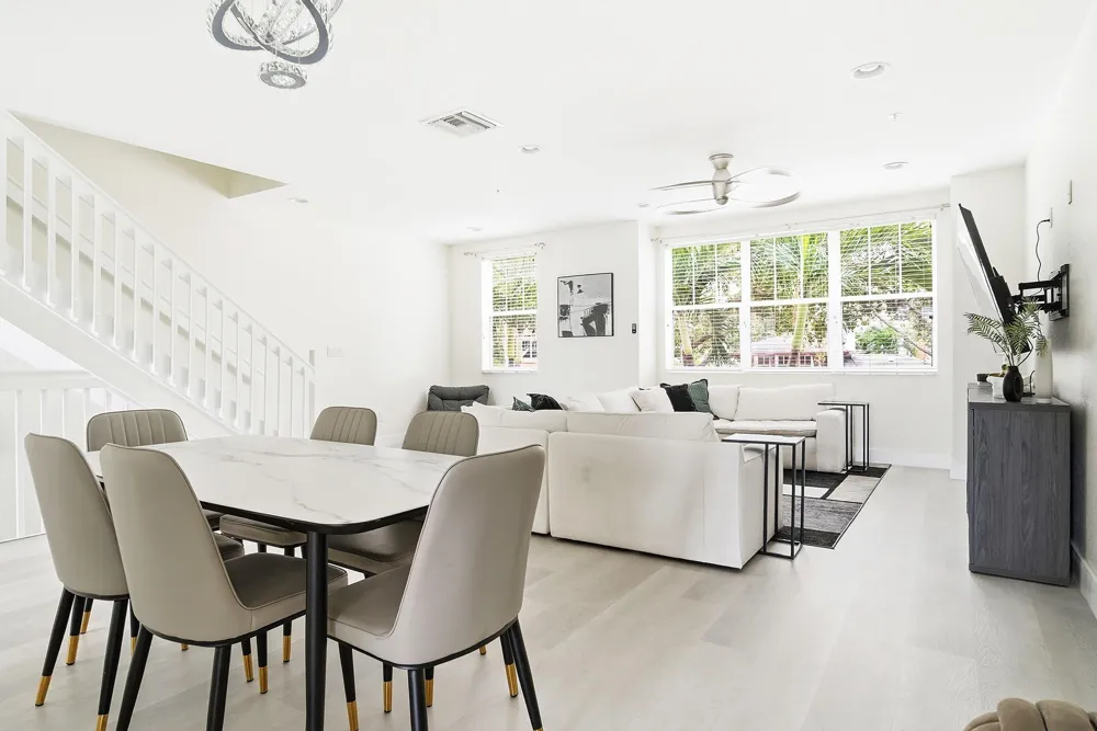 Stylish 4 BR + 3.5 BA townhome at popular CitySide Condo in the heart of West Palm. CitySide is gated and offers resort-style living just minutes from downtown. This fine home offers a renovated kitchen with stainless steel appliances, counter seating, breakfast table space, a wall of windows, and a pantry. The main (second-level) living area offers an expansive entertaining space, treetop views, and a half bath. Upstairs, on the third level, you'll find the king-size primary BR with an en suite bath and a custom walk-in closet, two guest BR, a hall bath, and laundry. The first floor (entry level) boasts a fourth BR and a full bath. Impact glass throughout. 2-car garage parking w/EV charging station + 2 additional street parking permit. Resort-style pool, Clubhouse, grilling stations, Gym Luxe amenities include: resort-style swimming pool, grand clubhouse, grilling stations, fitness center, and yoga room. Relish the five-star location, convenient to Whole Foods | CityPlace | NORA District | Brightline | PBI airport, and the crown jewel, Palm Beach.