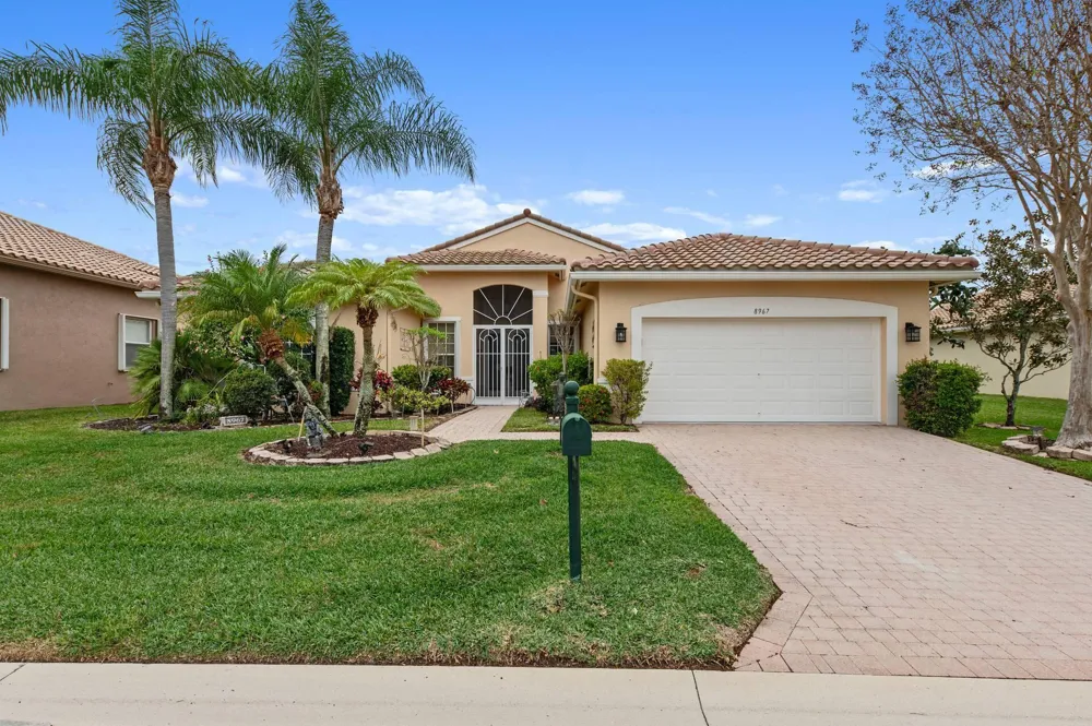 Welcome to this beautifully renovated Rubicon model in the guard-gated 55+ community of Ponte Vecchio. This single-story home offers approximately 2,308 square feet under air with 2 bedrooms, 2 dens (ideal for additional bedrooms or office space), and 2 full bathrooms in an open, airy floor plan. Recent updates include a brand-new roof (2024), a new washer and dryer tower, new bedroom flooring, updated bathrooms, fresh interior paint, new lighting and fans, new kitchen countertops, and an epoxy-finished garage floor. The spacious primary suite features two walk-in closets, dual vanities, a separate shower, and a Roman tub. Enjoy outdoor living with a beautiful screened-in private pool overlooking the lake, providing a peaceful and private setting.