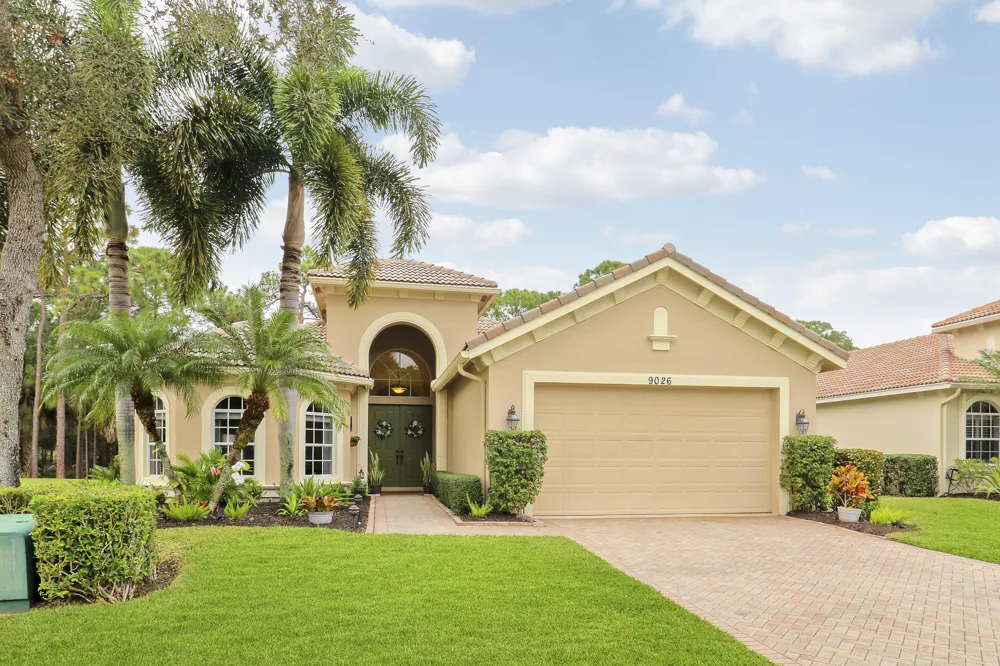 Welcome to this exceptionally maintained 3- bedroom, 3-full-bath, 2 car garage home located in the gated community of PGA Village. This home located on a spacious pie shaped lot features a newer 2022 Heated Pool, Spa and Lanai overlooking a beautiful scenic preserve. This home features 12ft ceilings, new premium laminate flooring in all bedrooms, newly painted interior, upgraded recessed lighting and a new efficiency AC unit. The kitchen offers plenty of counter space for entertaining, lg breakfast bar, granite counter tops, SS appliances, 42'' wood cabinets and a pantry. You will enjoy sitting in the kitchen dining area looking out the glass bay window.The primary bedroom overlooks the pool/spa and preserve with sliding doors for easy access. Features two walk-in closets, dual vanities spa like soaking tub and lg walk-in shower. The lanai offers plenty of covered area to enjoy the outdoors or watch some TV. PGA Village offers COUNTY TAXES ONLY. There are two MEMBERSHIP OPTIONAL golf courses in PGA Village. The PGA Golf Club and a private club The Legacy Golf & Tennis Club. The Island Club offers lots of activities, pickleball, tennis, exercise rooms, gym, ballroom, billiards, card rooms and more. 45 min to Palm Beach International airport. Minutes from Cleveland Clinic Hospital among others, restaurants, shopping and parks. Home to the Mets spring training and Minor league team. This a great home..great location. Easy to schedule an appointment.