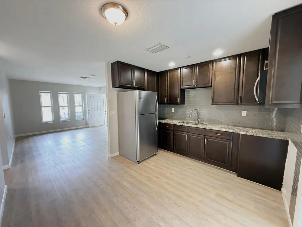 This property features no HOA and a unique layout where the third bedroom is a private efficiency with its own entrance, kitchen, and bathroom. It's a great setup for those needing extra privacy or a separate guest space. Wi-Fi is included in the rent, while the tenant is responsible for water and electric. Simple, functional, and ready for move-in.