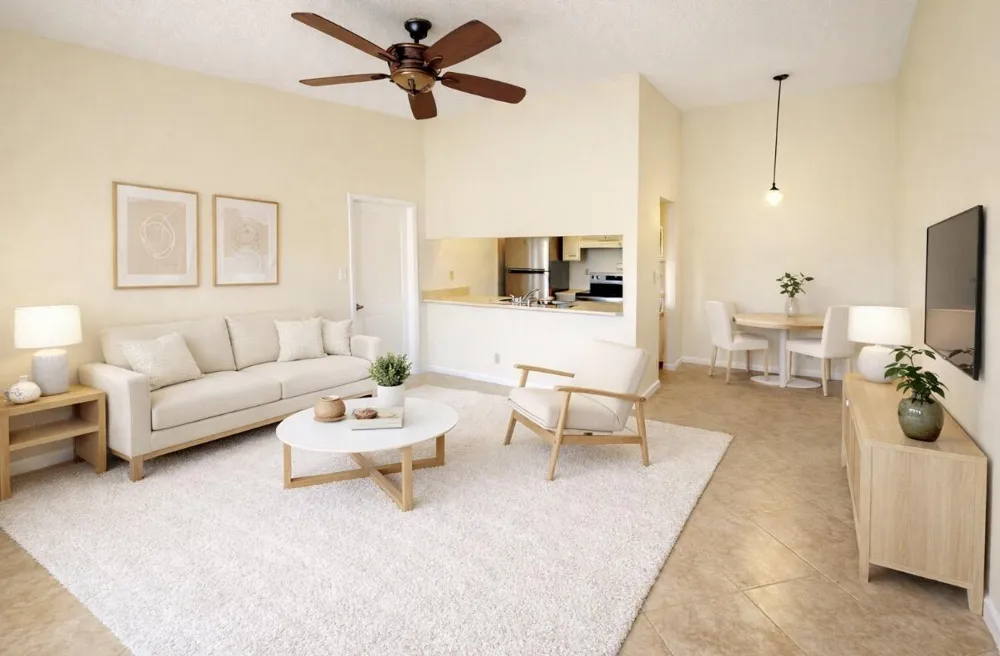 This light and bright 2-bedroom, 2-bath second-floor condo is located in a peaceful, all-ages gated community in desirable West Boca. The home features a smart split-bedroom floor plan, vaulted ceilings, and bamboo flooring throughout. Enjoy a brand-new A/C system with a 10-year warranty, brand-new kitchen appliances, and fresh interior paint completed less than a year ago. Additional highlights include an in-unit washer and dryer, assigned parking conveniently located in front of the building, and ample guest parking. Water and cable are included. Residents enjoy access to the community pool, tennis courts, and community room. Ideally situated near dining, shopping, and A-rated schools—experience the best of the Boca Raton lifestyle.